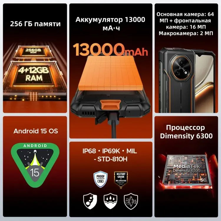 - Прошел испытания на ударопрочность по стандарту MIL-STD-810H